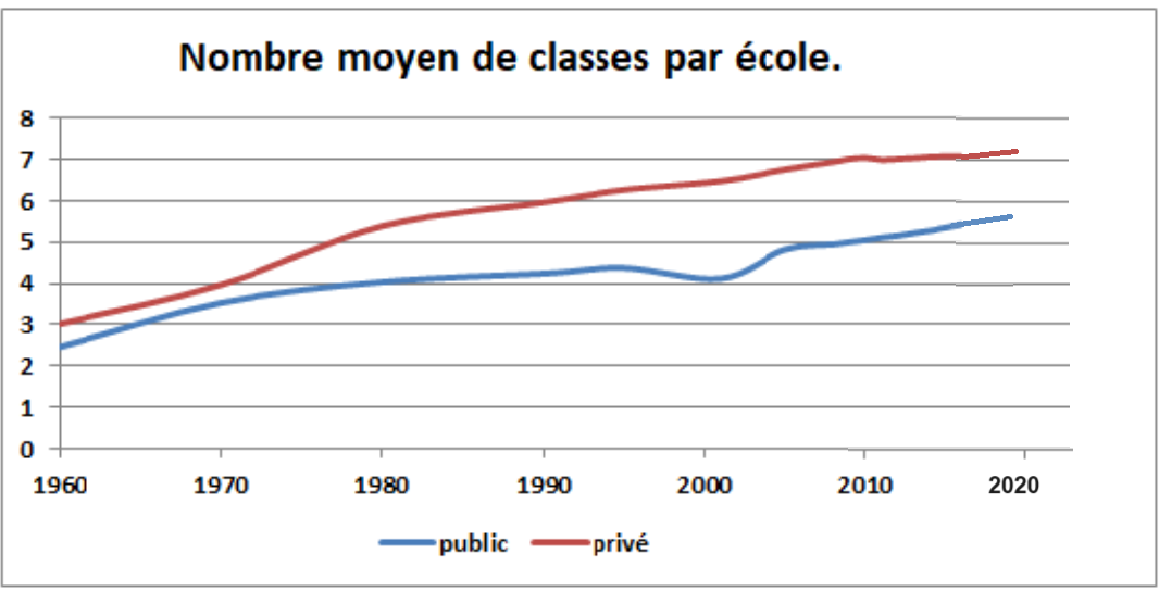 Jusqu’en 1980, le nombre de classes augmente dans les écoles publiques en raison principalement de l’abaissement progressif de l’âge d’entrée à l’école maternelle qui fait plus que compenser la fermeture des