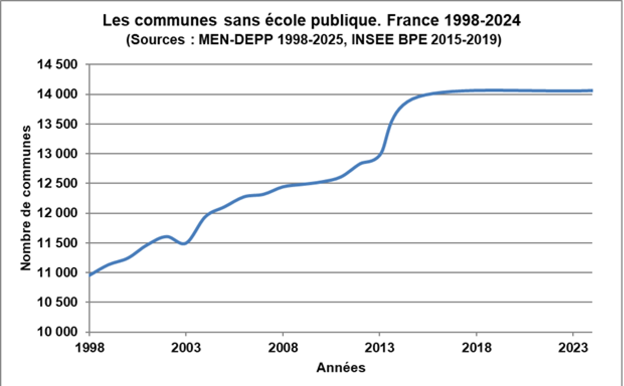 Même si l’école élémentaire reste le service public le plus présent dans les communes françaises, le nombre de communes qui en sont démunies ne cesse d’augmenter. En 2013, plus de 13 000 communes n’avaient plus d’école publique du fait des fermetures de classes et de leur transfert dans les regroupements pédagogiques intercommunaux (RPI) concentrés.