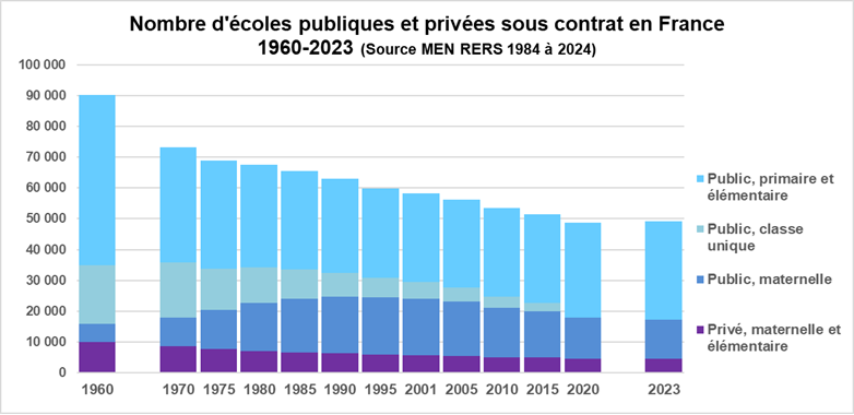 Cette revue est imprimée en noir et blanc ce qui ne facilite pas la lecture des graphiques qui sont ici réalisés en couleurs. La page est organisée en fonction du plan de l’article et propose pour chaque sous partie soit des figures complétant le propos ou des renvois vers des pages présentes dans ce site. Comme pour les autres pages du site des mises à jour seront effectuées. Du fait de la parution de l’article en juin, période pendant laquelle ne sont pas encore publiés par la DEPP toutes les mises à jour annuelles des données, les données antérieures à 2023 seront mises à jour dans les prochaines semaines et certains éléments manquants seront intégrés ultérieurement.